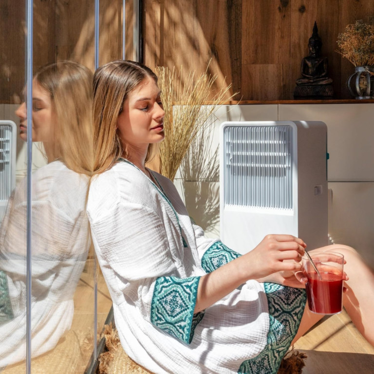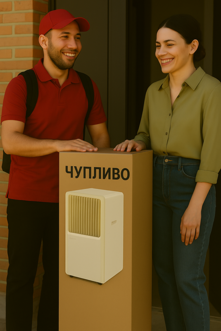 Голям капацитет: преносим климатик с охлаждащ капацитет от 18 000 BTU, еквивалентен на 1750 хладилника. Този капацитет улеснява бързото и ефективно достигане на желаната температура в хола.