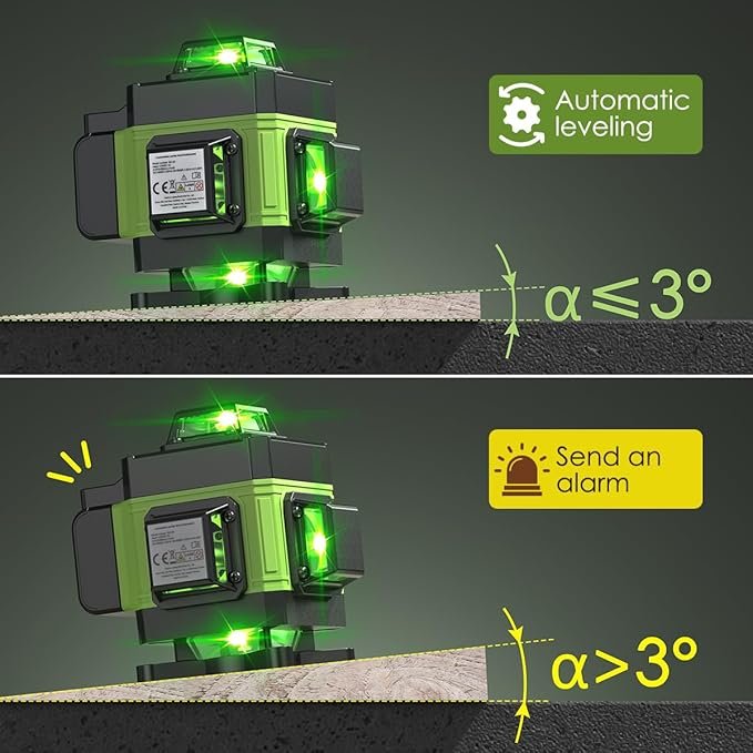 🎯 Autolivellante & Ultra Preciso Il sistema autolivellante integrato corregge automaticamente le irregolarità del terreno (fino a ±4°), garantendo linee perfettamente dritte anche in ambienti complessi.