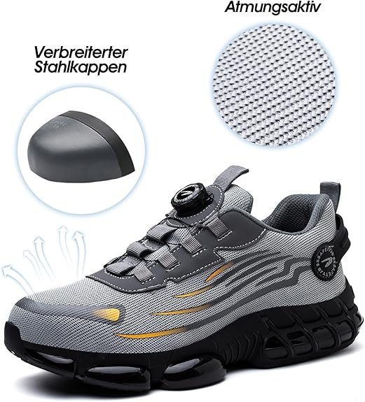 С модерен и лек дизайн, с устойчива на удари стоманена капачка и антихлъзгаща се подметка, те са идеални за трудни работни среди като строителни площадки, складове и фабрики. Дишащият материал поддържа краката сухи и удобни, а износоустойчивата подметка осигурява дълготрайна защита. Тези обувки са основни за ежедневната защита в рискови работни среди.